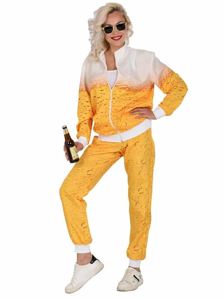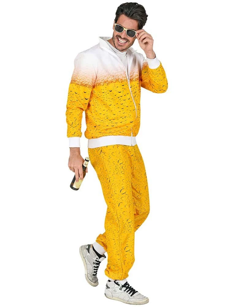 This Beer printed Shell Suit Costume is fab for many occasions. The Beer Shell Suit Costume is worn over your own clothes. Unisex costume. Great fun for Halloween, Fancy Dress parties and also great for an advertising costume for businesses.