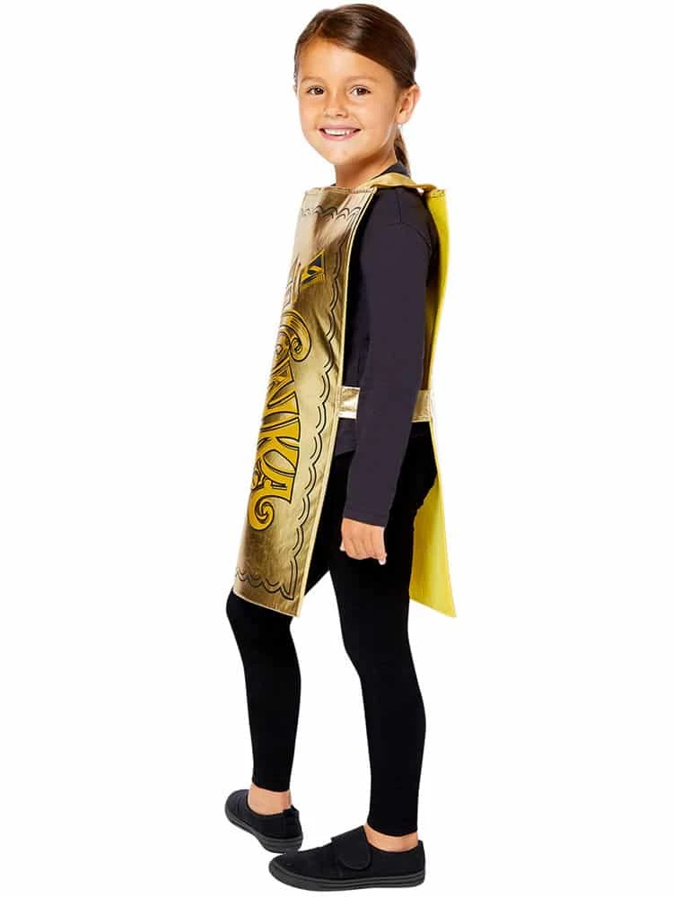 Easy to wear Roald Dahl costume, simply slip this Willy Wonka Golden Ticket Dressing Up Costume over your head and you are the Golden Ticket from Charlie & The Chocolate Factory! There are 2 sizes available – perfect for Book Day at school.